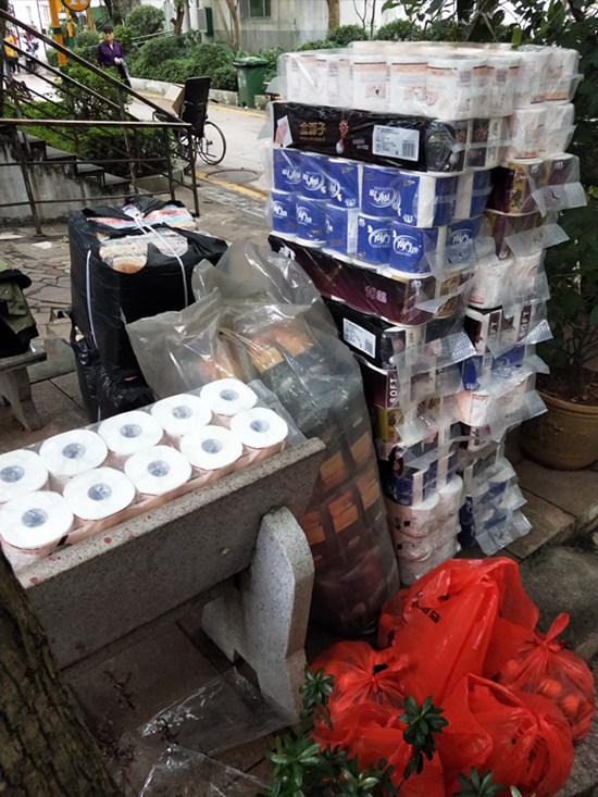中脈愛心企業(yè)捐贈大米、食用油、紙巾、襪子、毛巾等生活用品。